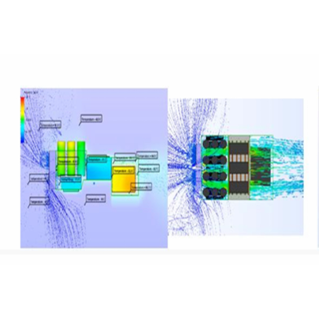 Radiating Radiating simulation Material processing test test Heat dissipation technology research and development computer simulationsimulation Temperature distribution cloud map Fluid pressure distribution cloud map Fluid velocity distribution cloud map Wind speed distribution Fluid temperature distribution Product temperature distribution